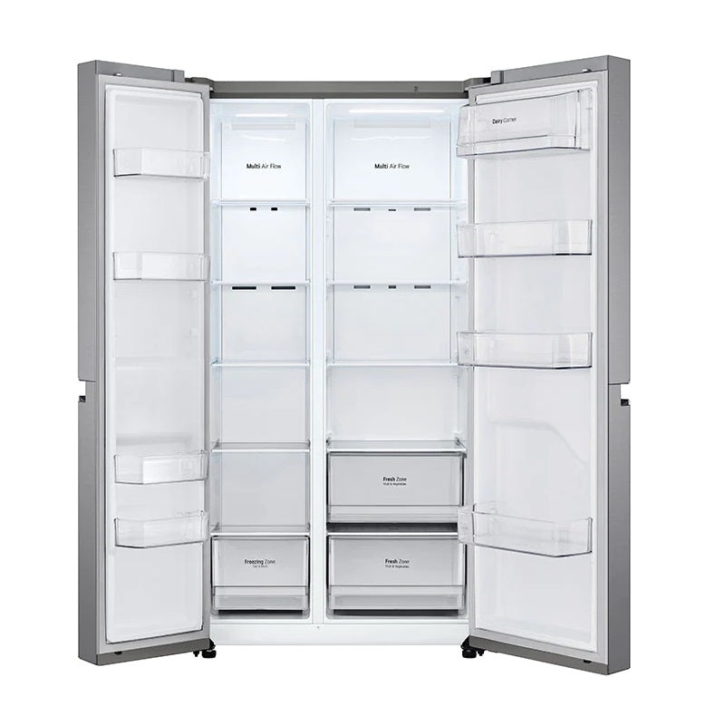 ثلاجة ال جي بابين دولابي 22.8 قدم، 647 لتر، مقبض مجوف، كمبروسر انفرتر، صناعة صينية، فضي - LS25CBBSIV